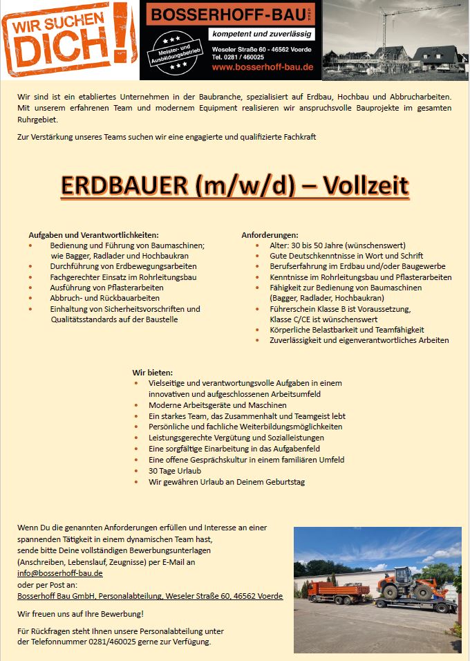 Wir suchen ab sofort und dauerhaft für unsere Baustellen in Voerde und nährerer Umgebung einen dynamischen